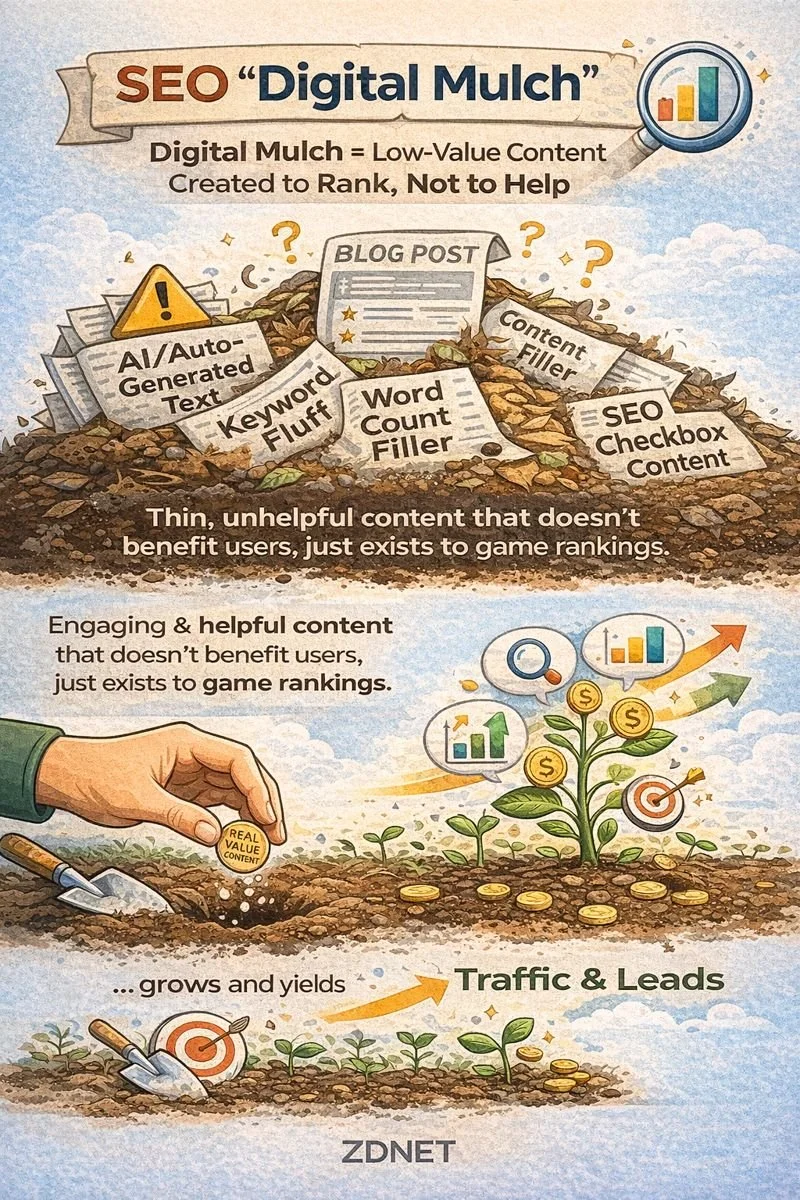 Google's John Mueller posted one of his one-liners, where he called some forms of SEO content as "digital mulch."