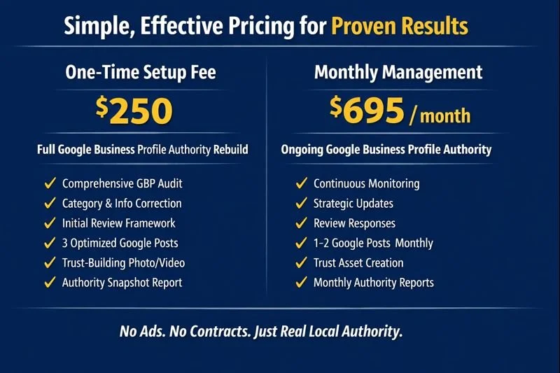 We replace endless marketing subscriptions with structured, one-time authority work and ongoing profile stewardship that restores visibility, trust, and customer flow.